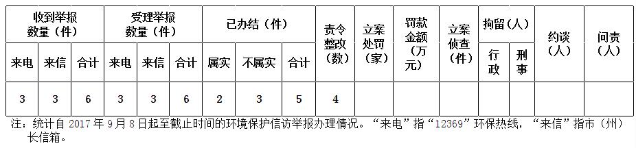 阿坝州受理环保信访举报处理汇总表(截至2017年11月14日)